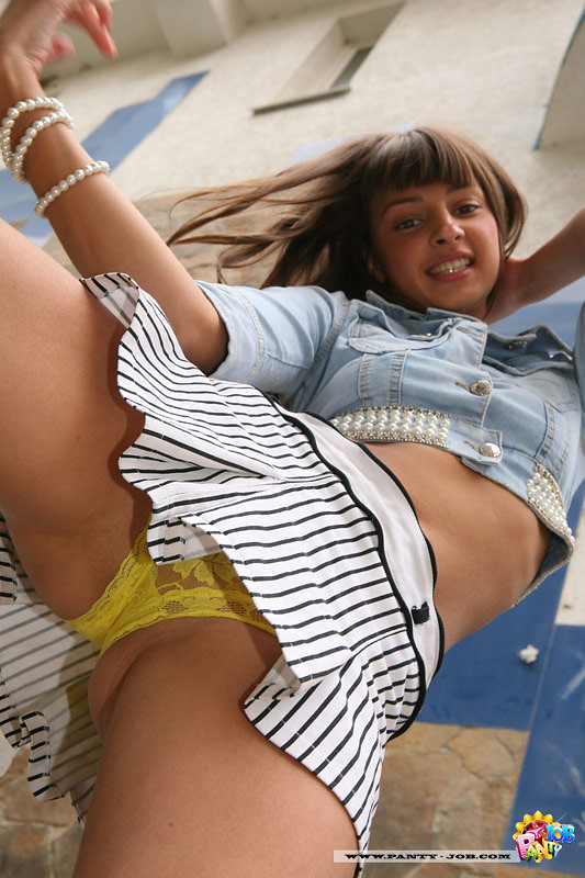Leggy teen flashes her little panties outdoors