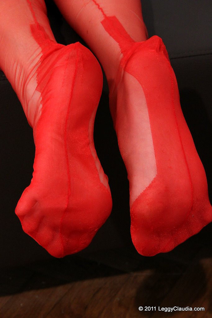 Leggy Claudia red nylons