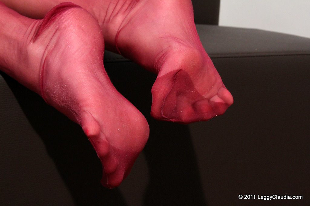 Leggy Claudia wine red nylons