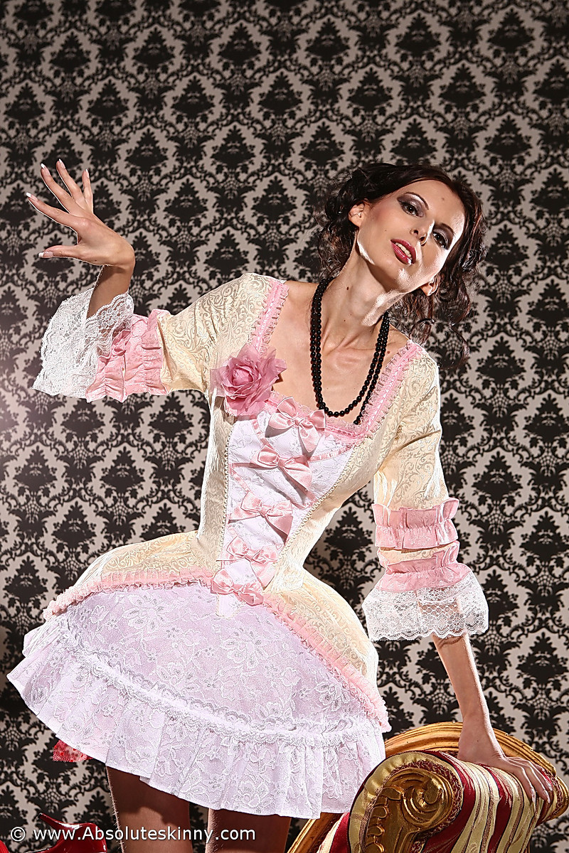 Skinny chick in fantasy dress