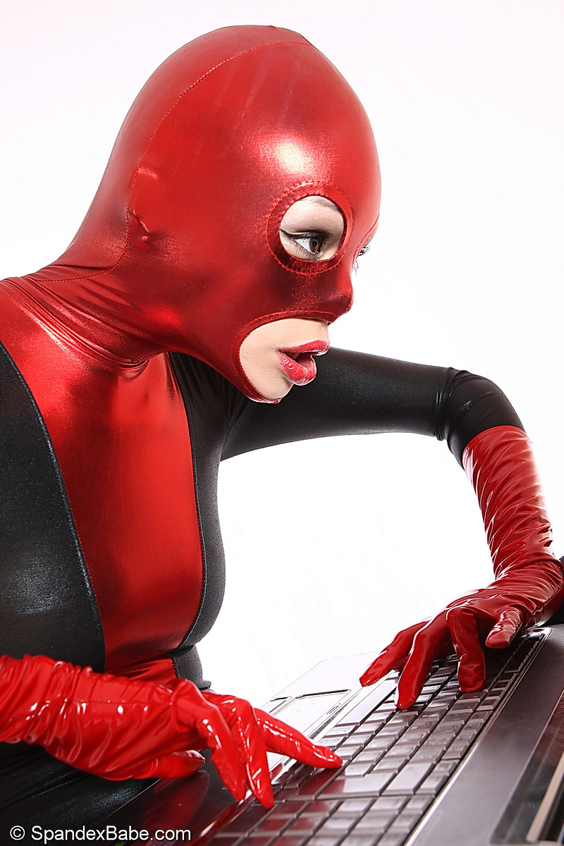 Mistress Gigi Allens fucks her helpless slave's ass with her huge red strap-on cock.