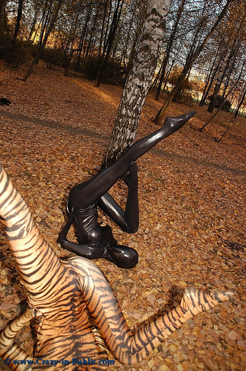 Paige Turnah is incased in this full body nylon suit and looking amazing