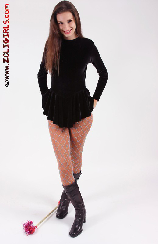 Amateur gal Lucy Van Angel footjob in sexy black pantyhose
