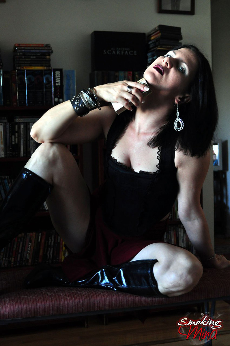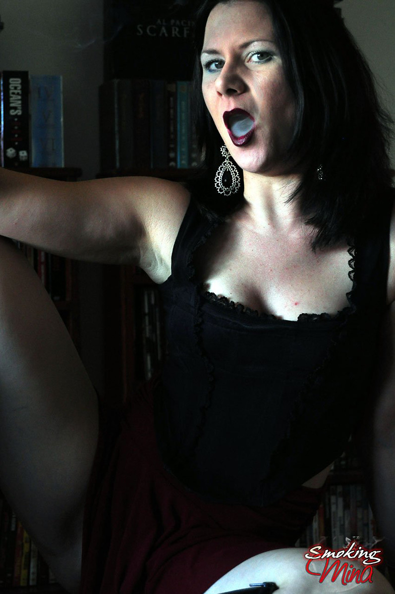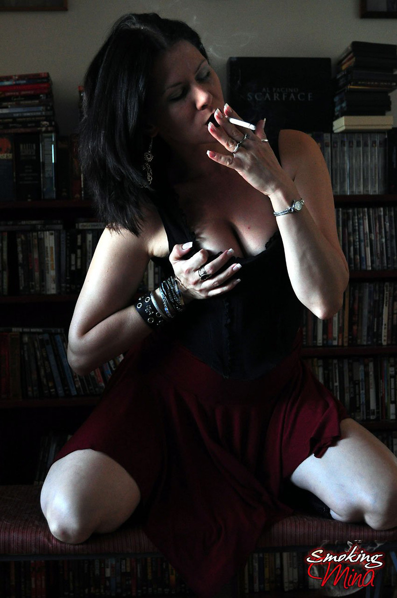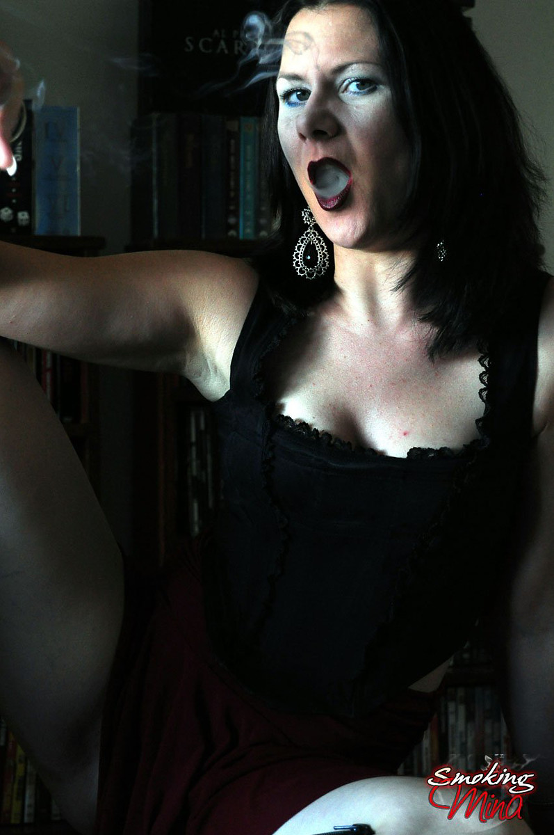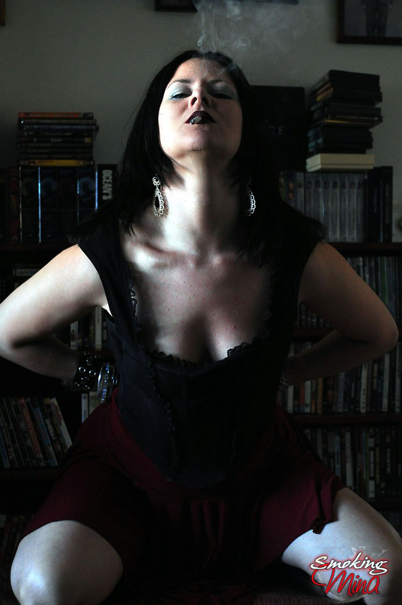 Kinky babe Mina enjoying smokes in her goth look