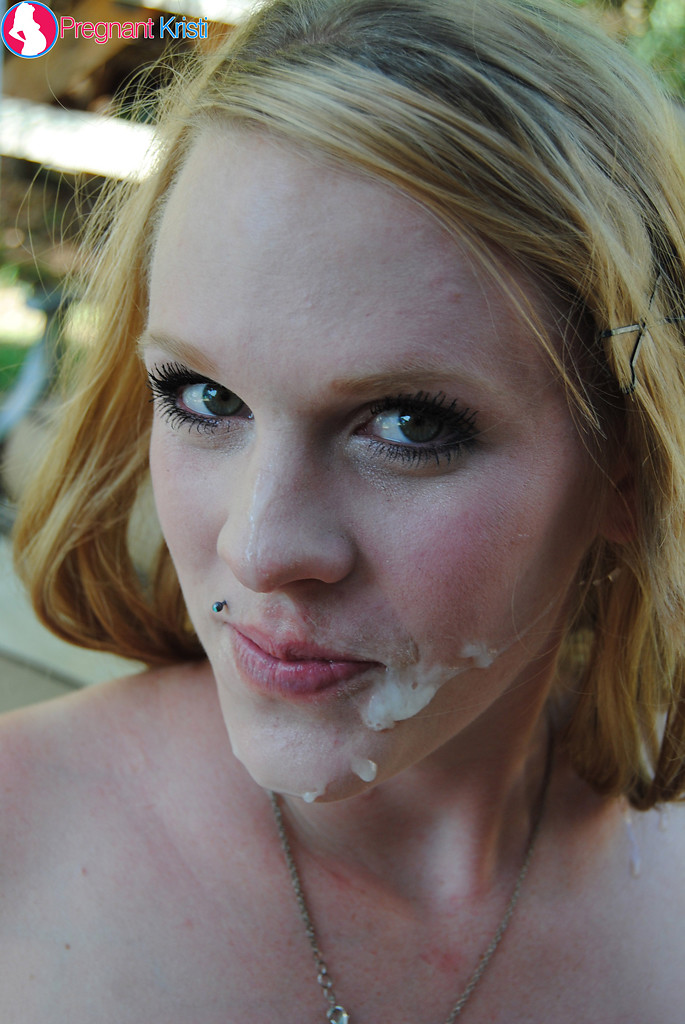 Preggy Kristi gets horny sucking hard cock and messy facial