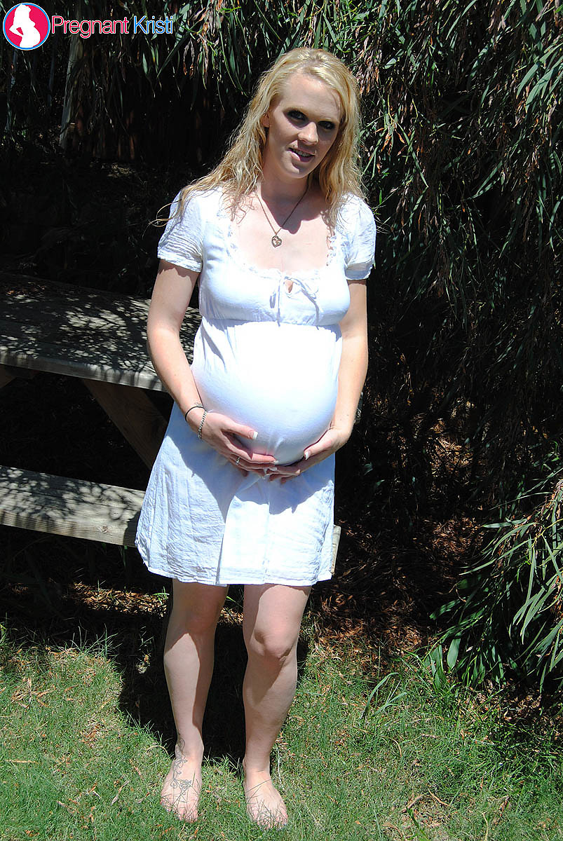 Girl in nylons and high-heeled shoes poses in front of mirror