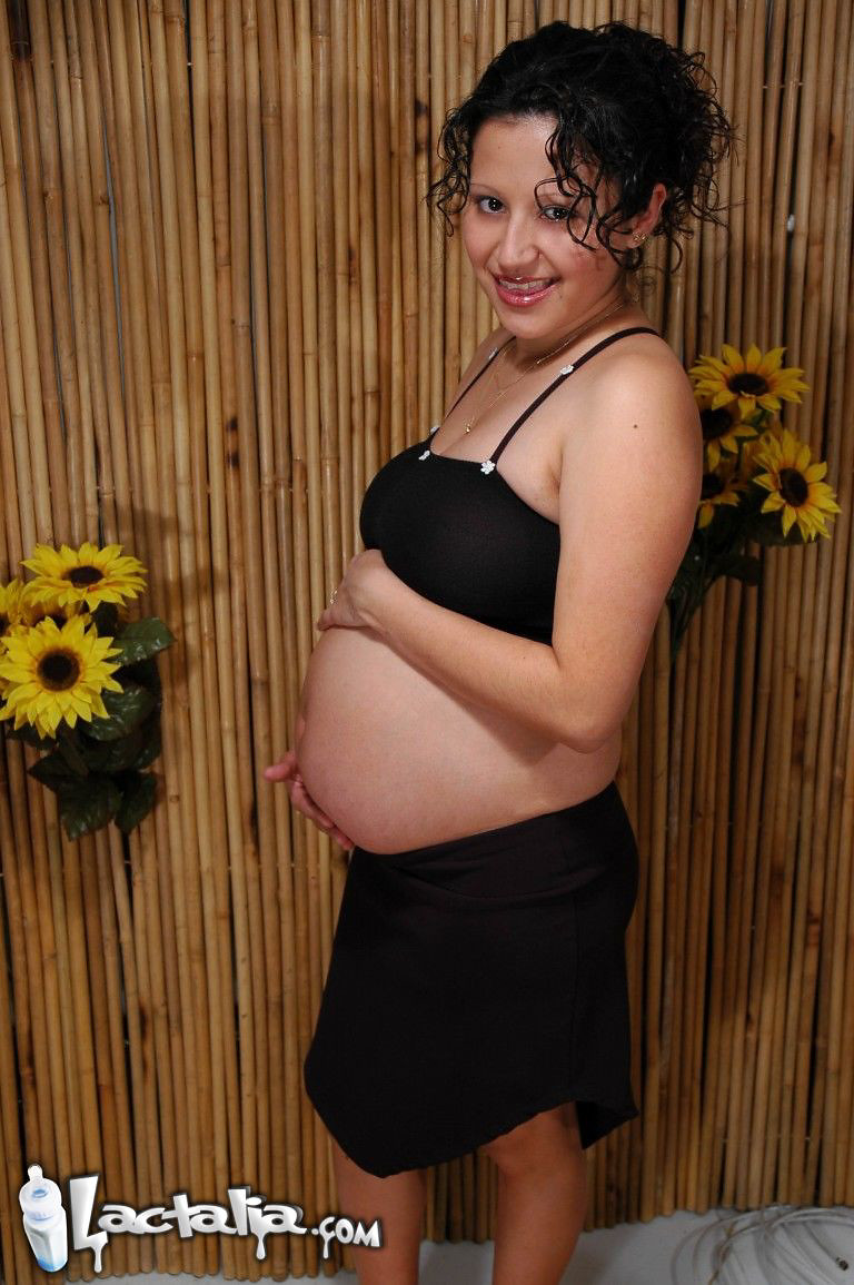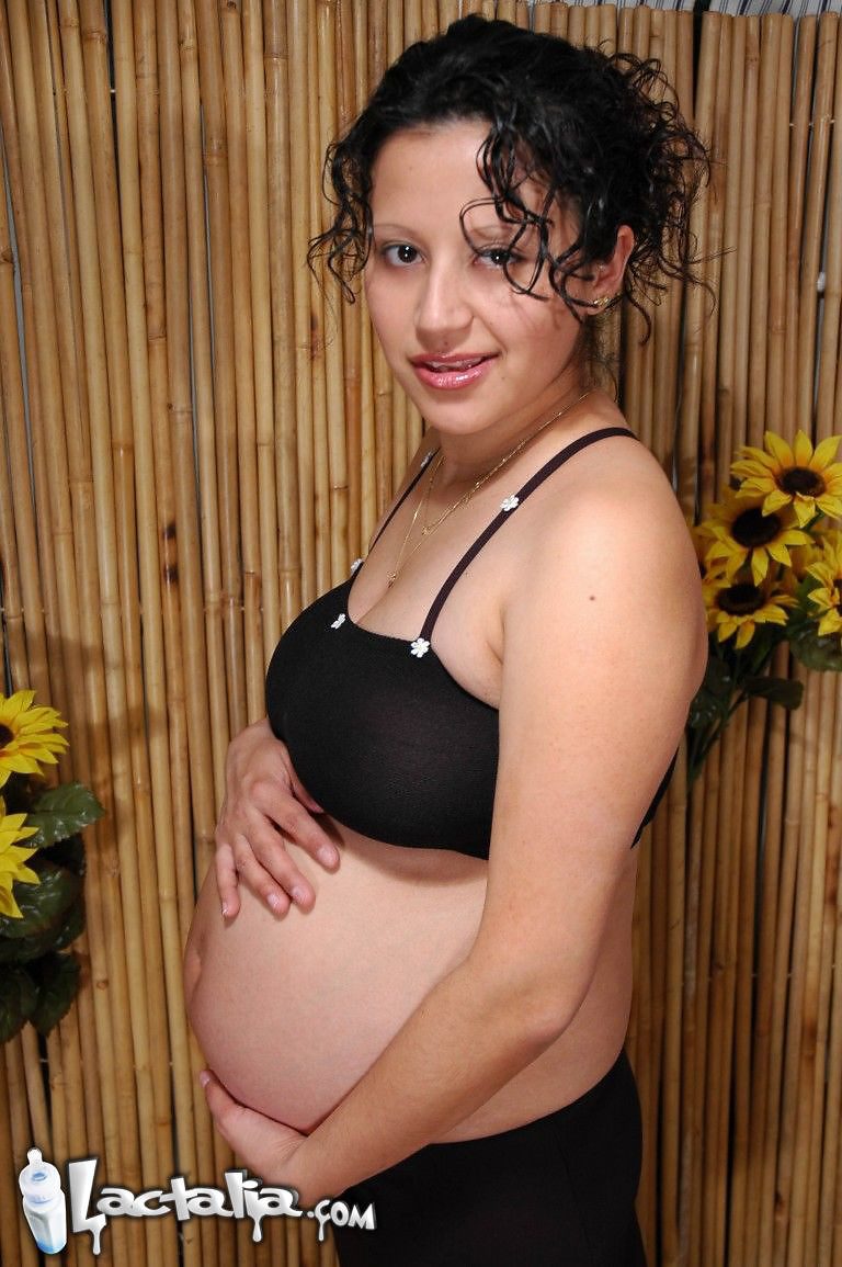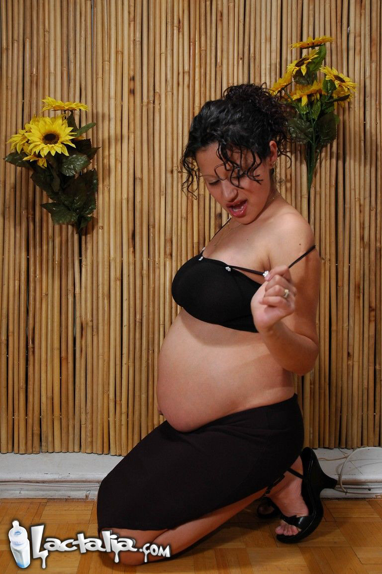 Busty pregnant slut Talia licking her tits and rubbing her pussy