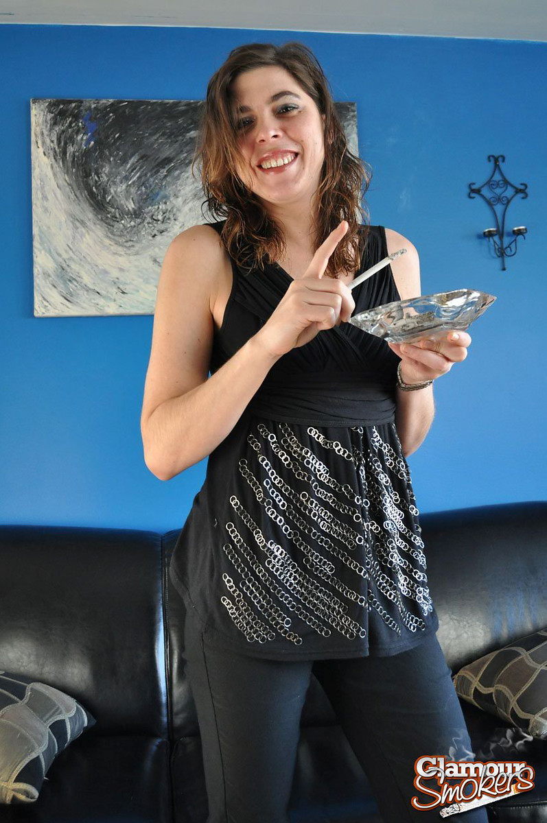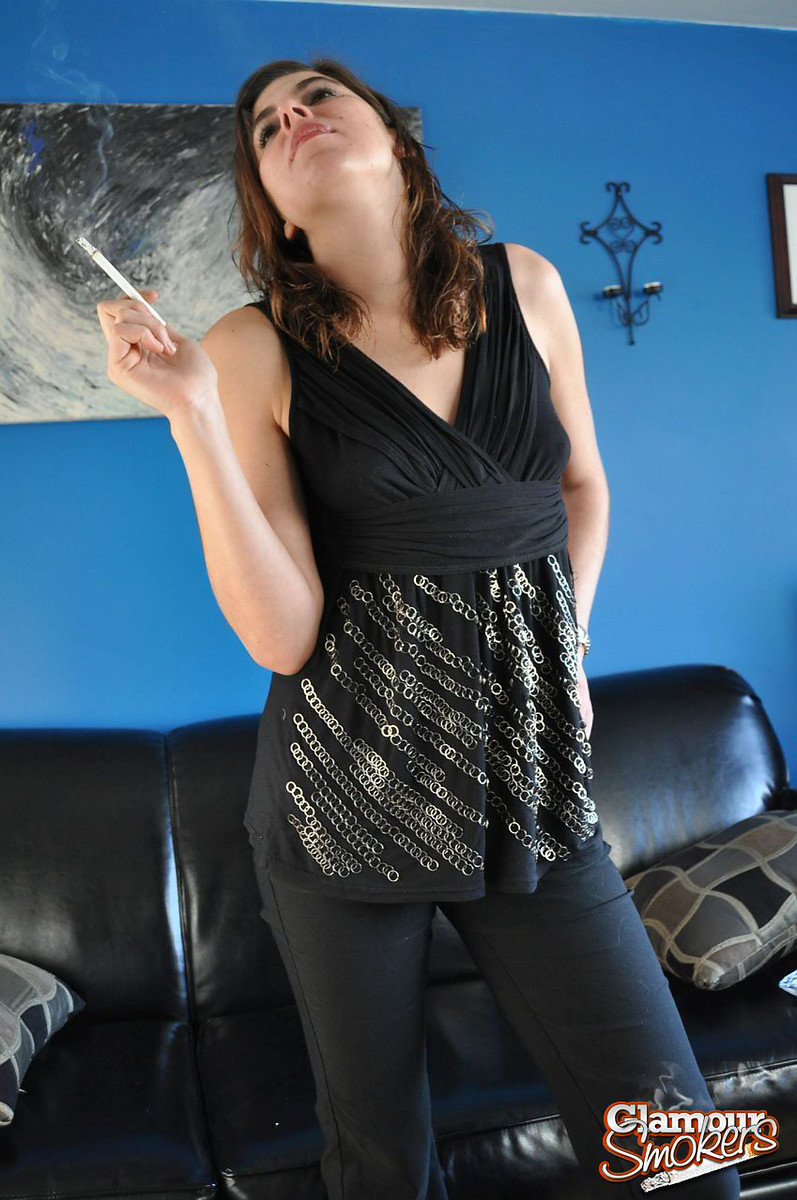 Tight brunette teen smoking and stripping