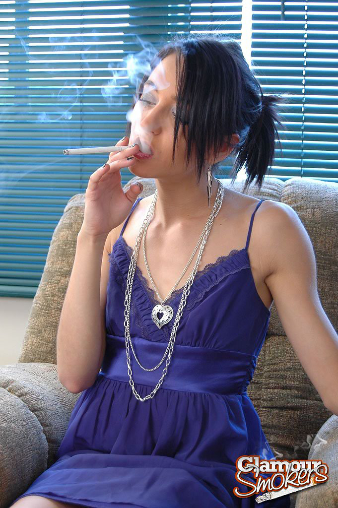 Petite brunette gets off on smoking a Misty and gets naked