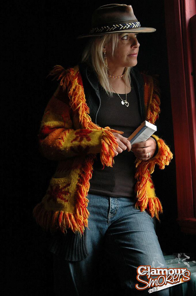 Mature lady in fishnet suit takes her dildo and plays with it on cam