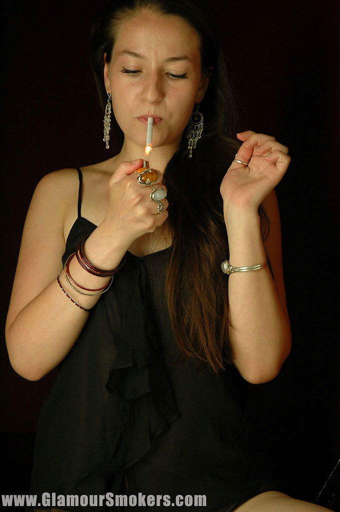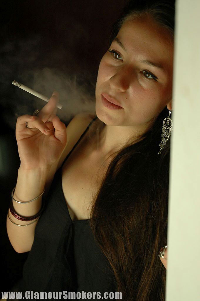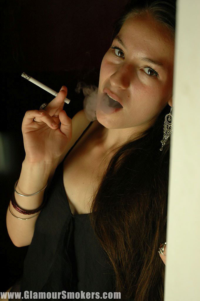 Pretty small-breasted smoker blows rings and cone shaped exhales