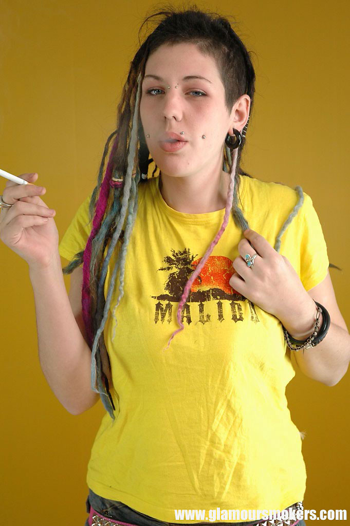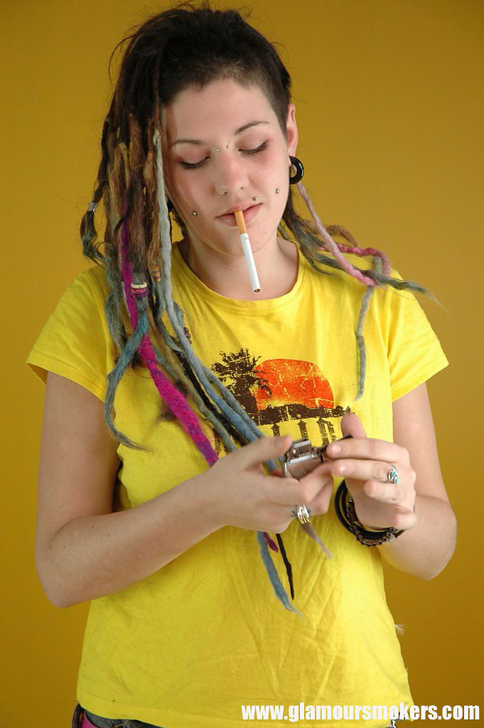 Redhead Mina in her sunglasses sexy smoking on a sunny day