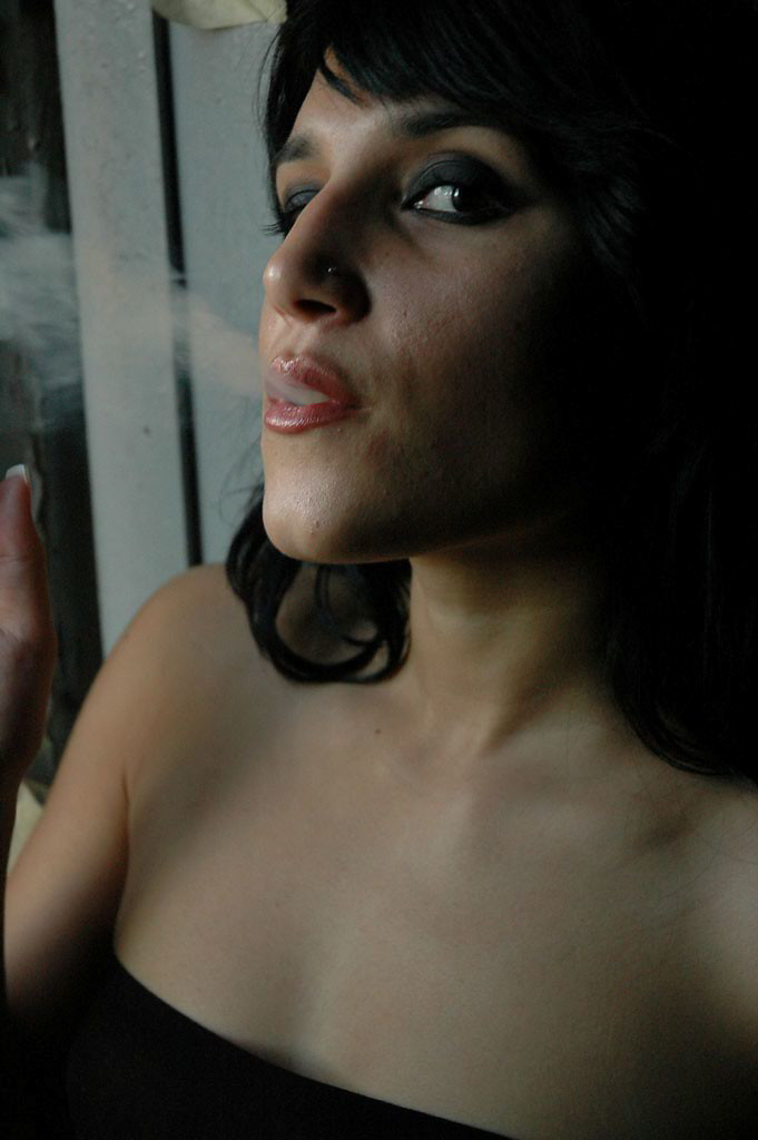 Mysterious brunette smoking in the shadows
