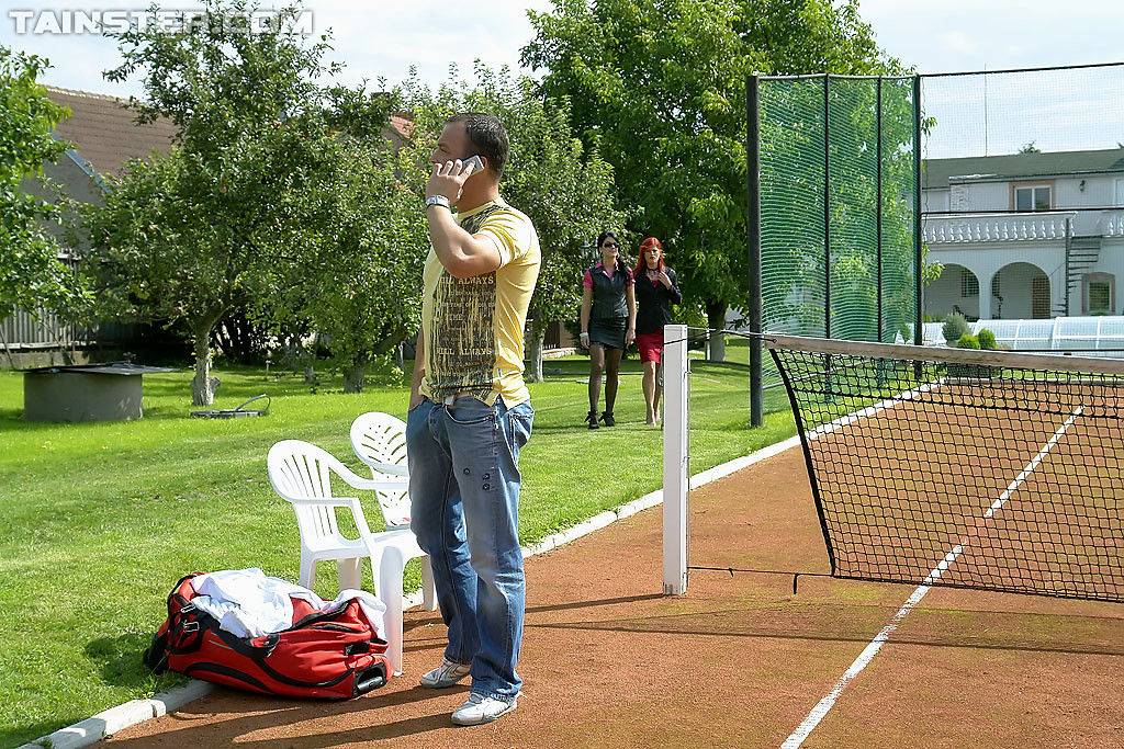 Cute sexy redhead and brunette fucked hardcore outdoors