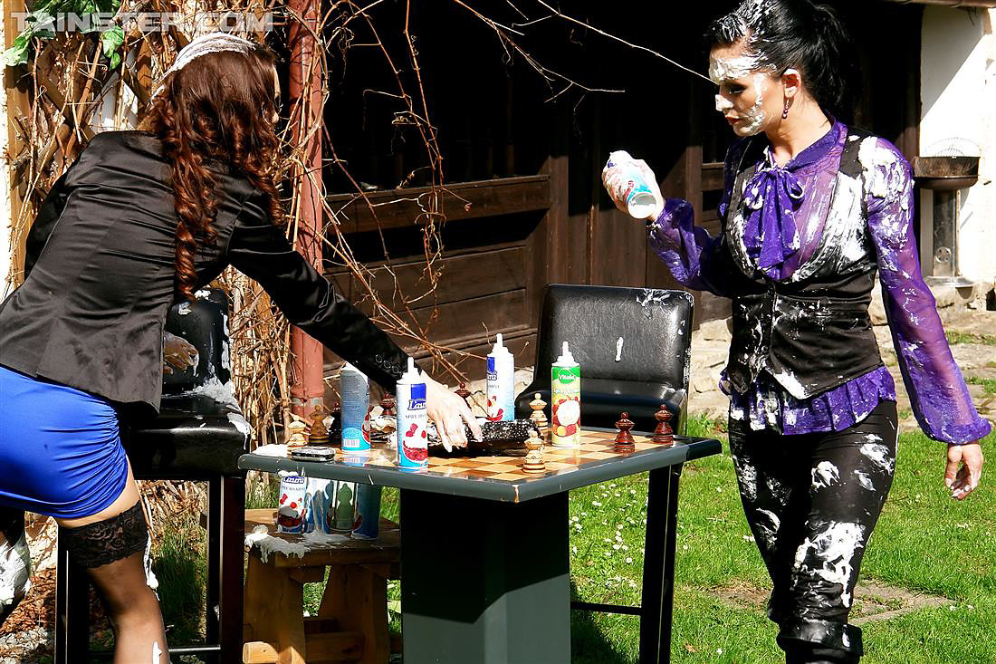 Two hot sexy sluts playing in messy whipped cream together