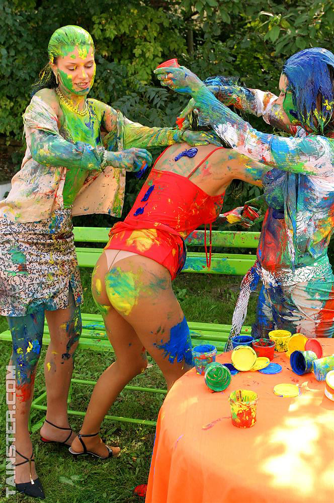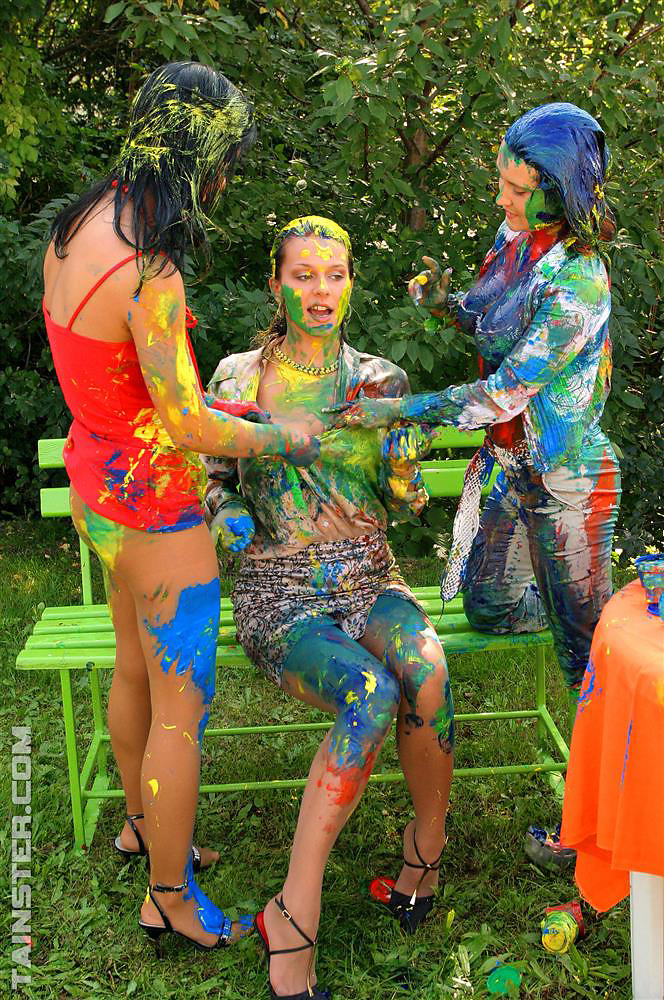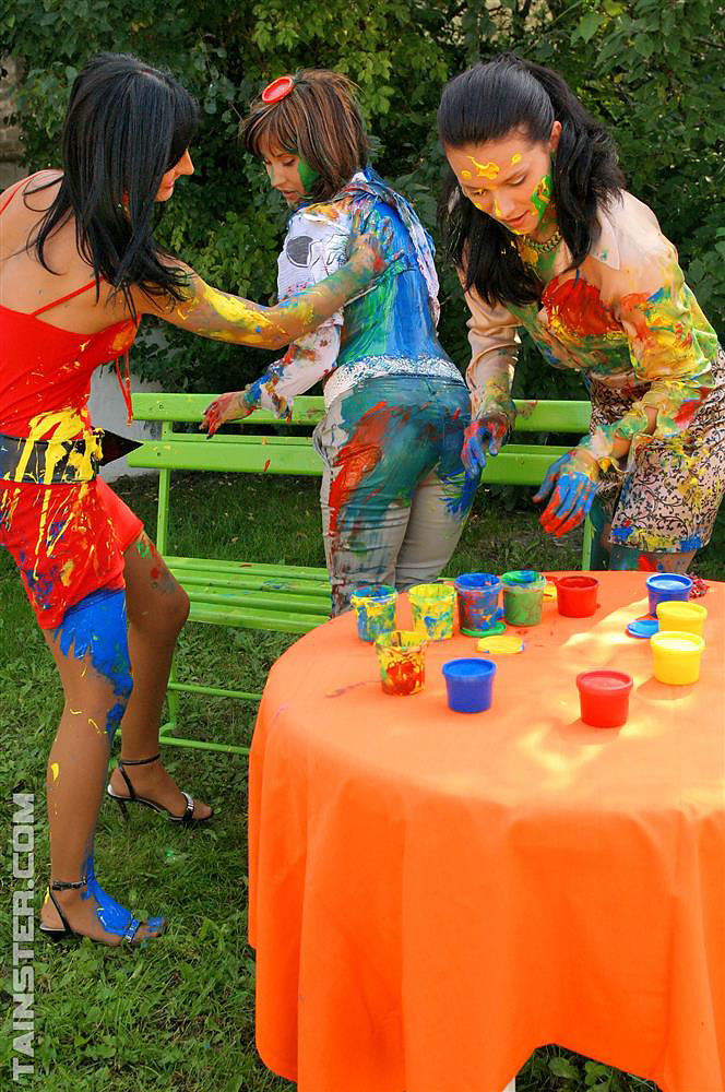 Sexy blonde in grey control top hose and her next-door babe messing around