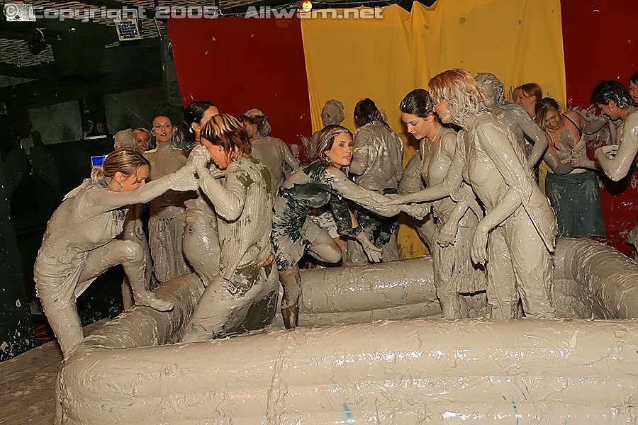 Large group of hot lesbians girls getting covered in mud