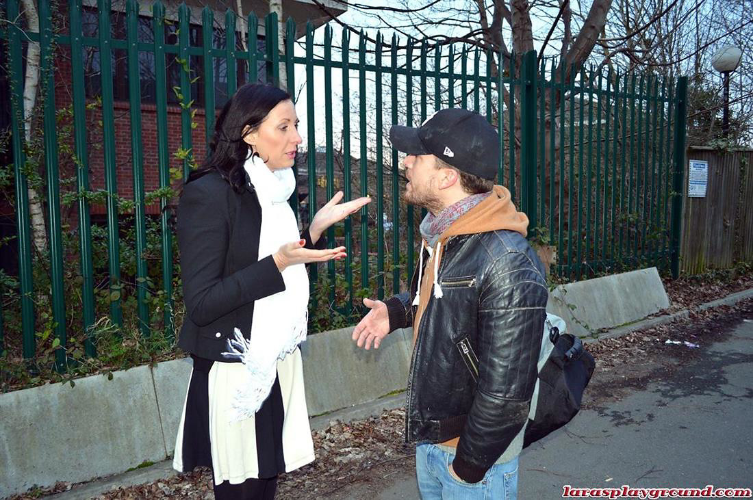 Naughty Lara Latex and a younger dude having steamy sex