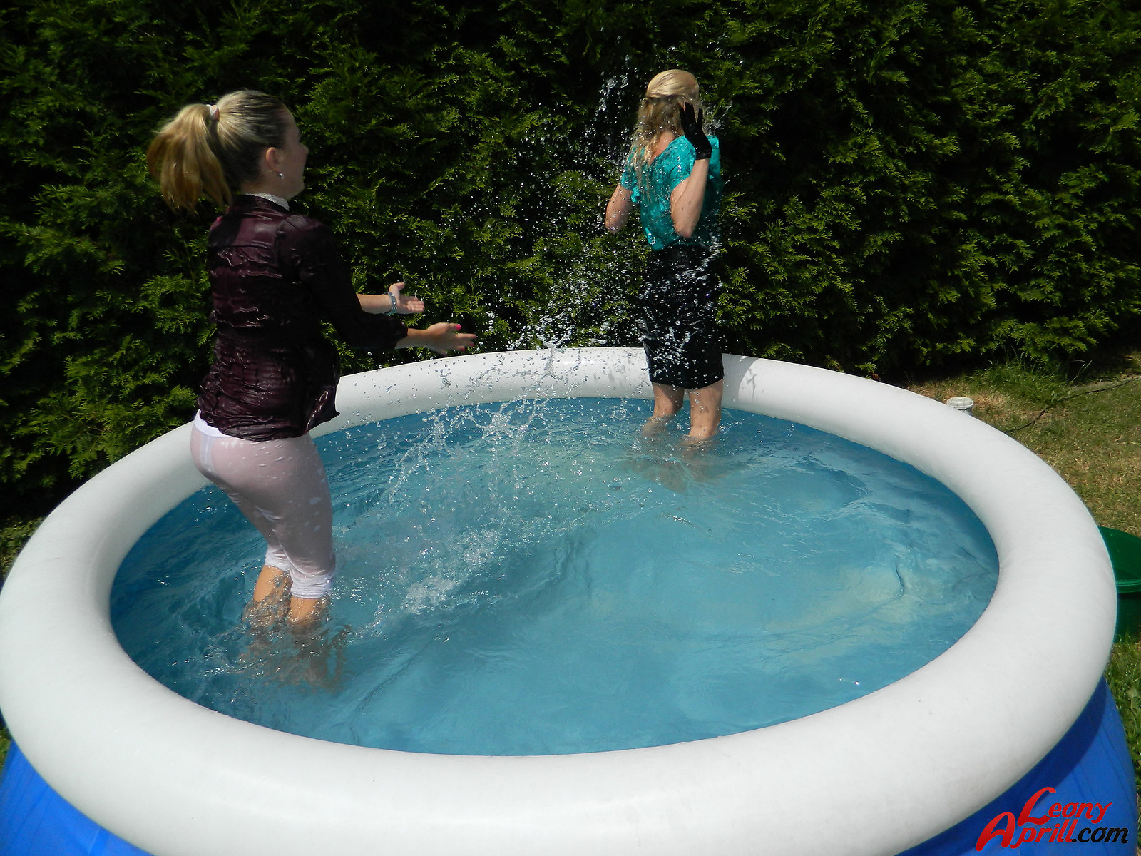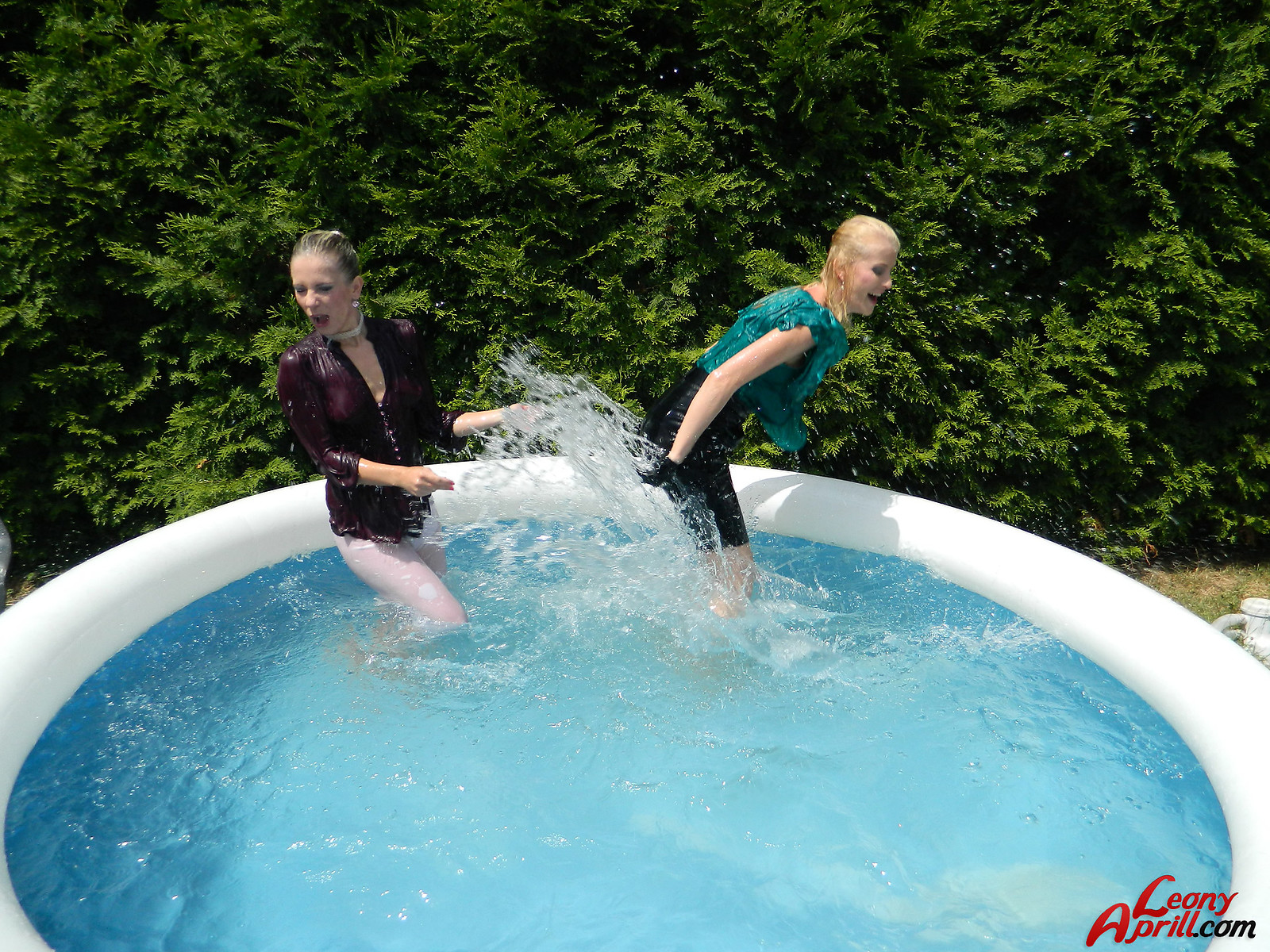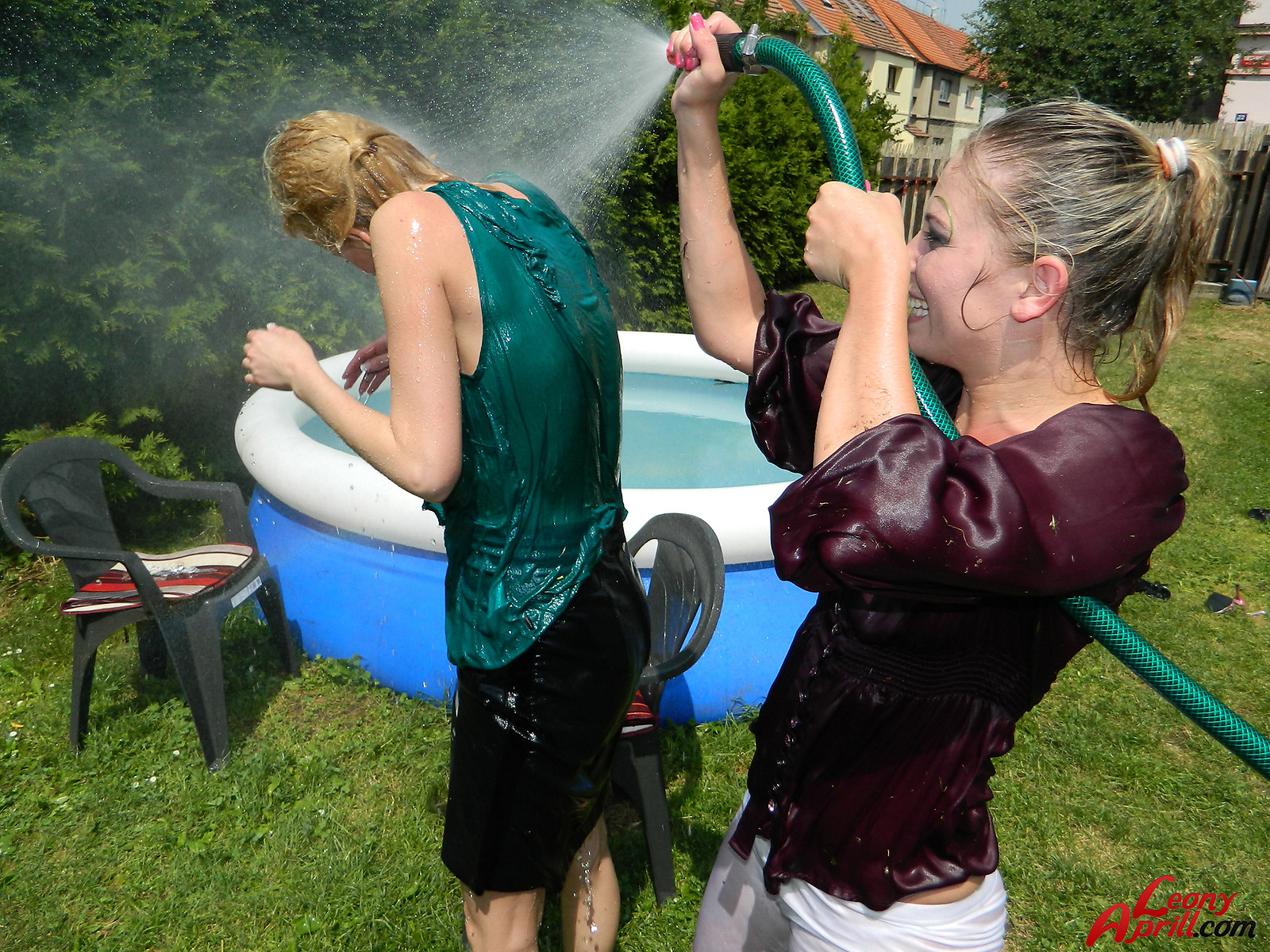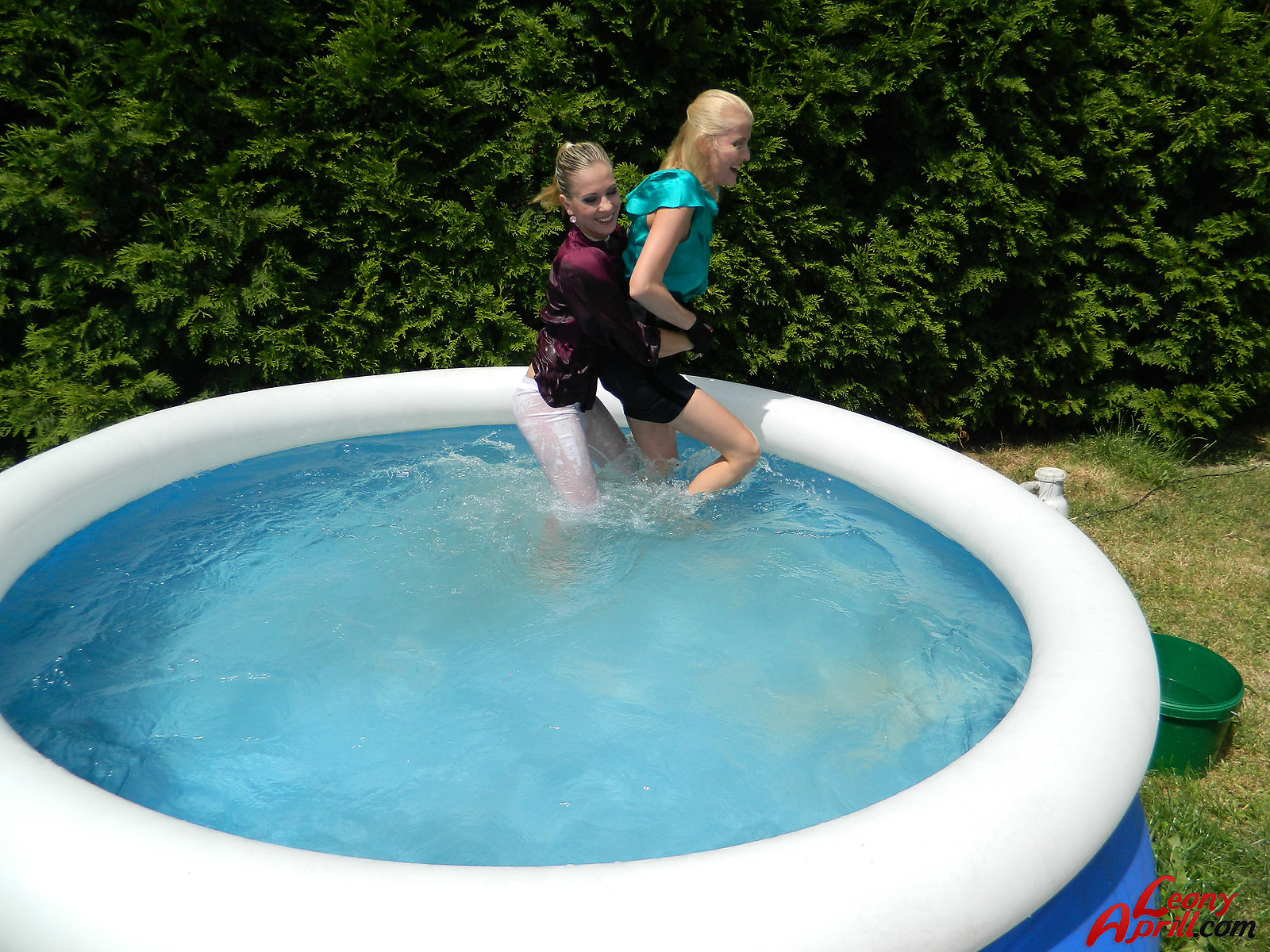 Pretty hot lesbian girls love diving into the garden pool