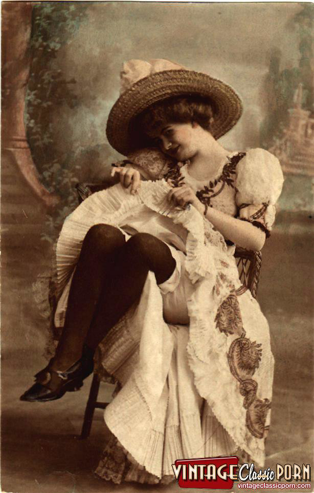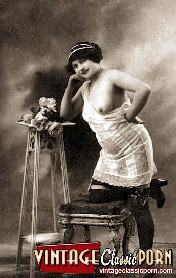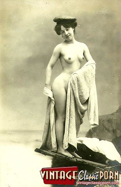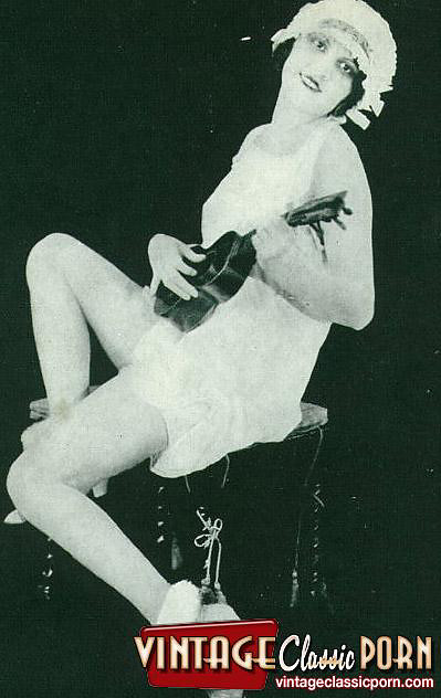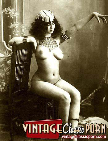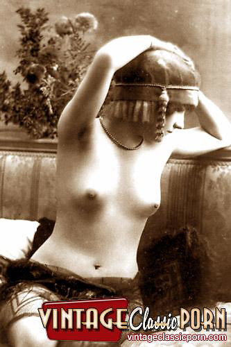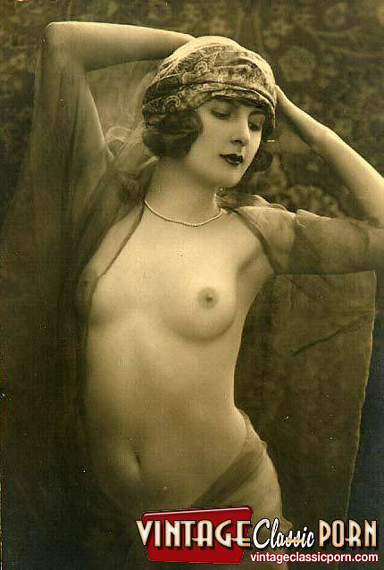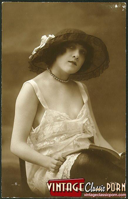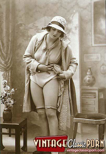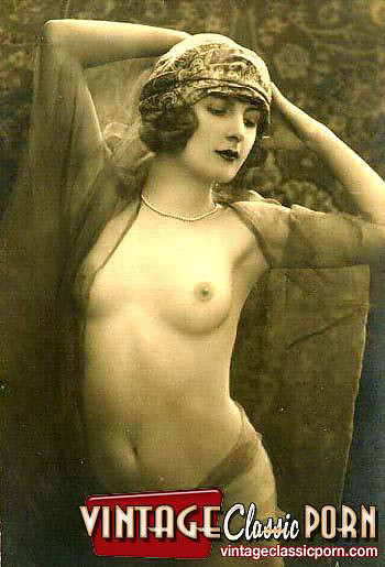 Vintage babes enjoy posing naked with a hat in the twenties