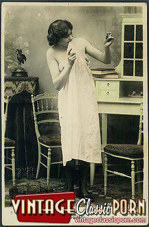 Pretty blonde posing sexy while stripping down to her control top pantyhose