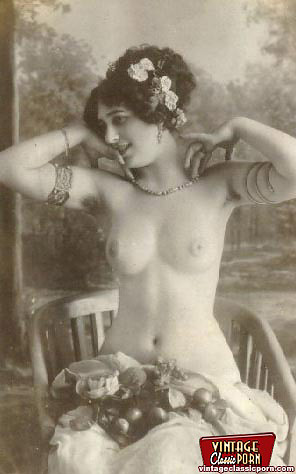 Pretty cute vintage topless girls posing in the twenties