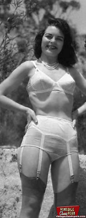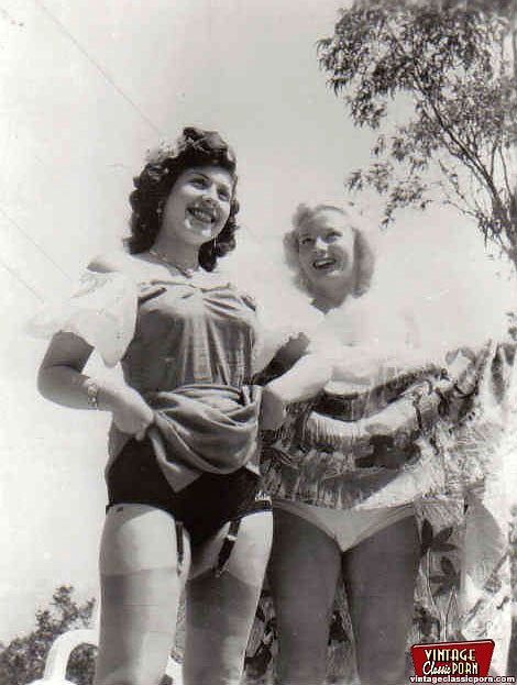 Hot vintage chicks posing naked outdoors in the fifties