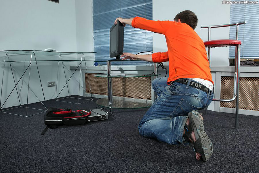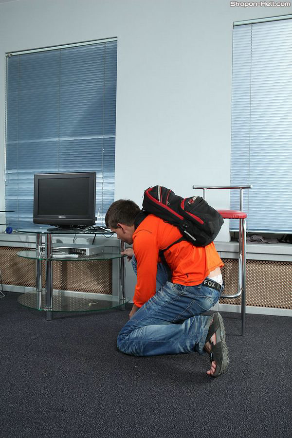 Shy student lets his kinky classmates explore his asshole with a huge strapon