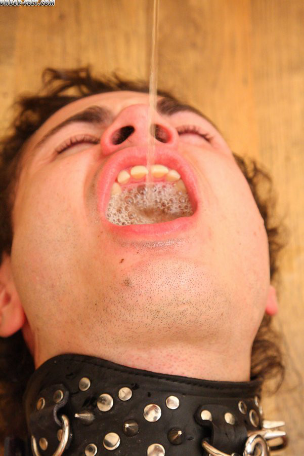 Seductive dominatrix orders the slave to lick her pussy and then pisses into his throat