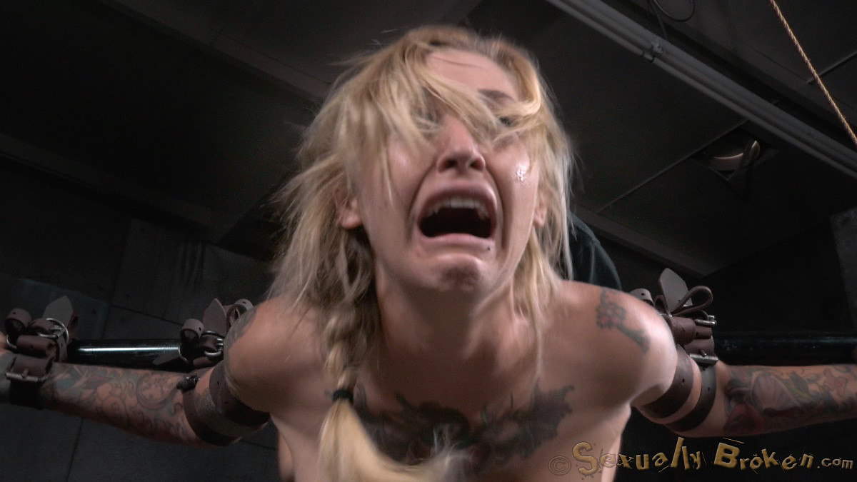 Toned and tattooed Kleio Valentien belt bound and destroyed with drooling deepthroat and rough sex