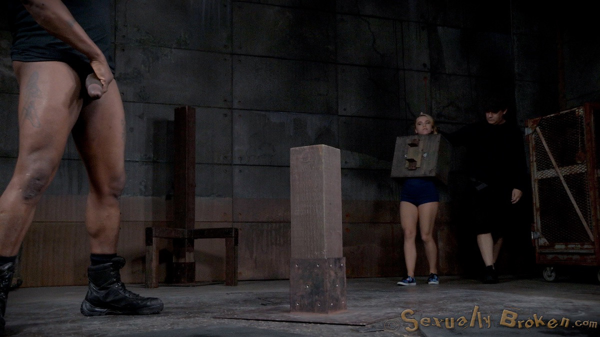 Blue eyed blonde Alina West bolted into a wooden box and roughly fucked by BBC drooling deepthroat
