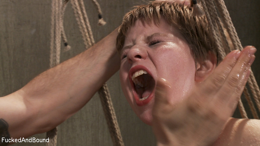 Mistress goes from fisting her slave to jamming a huge strap-on up his ass