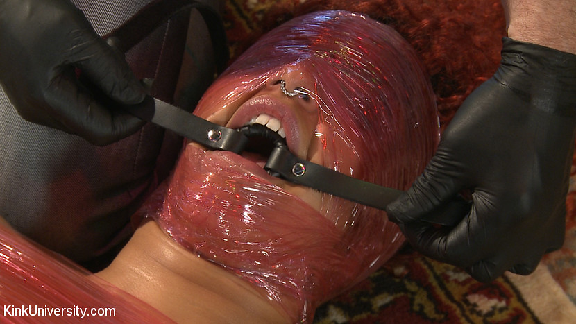Busty blindfolded MILF Syren De Mer restrained in strict device bondage