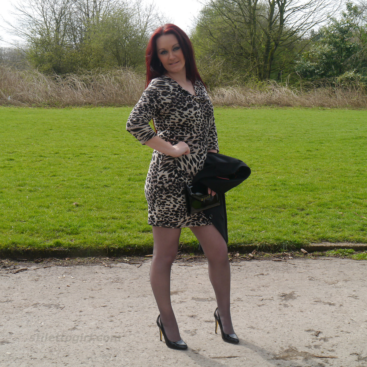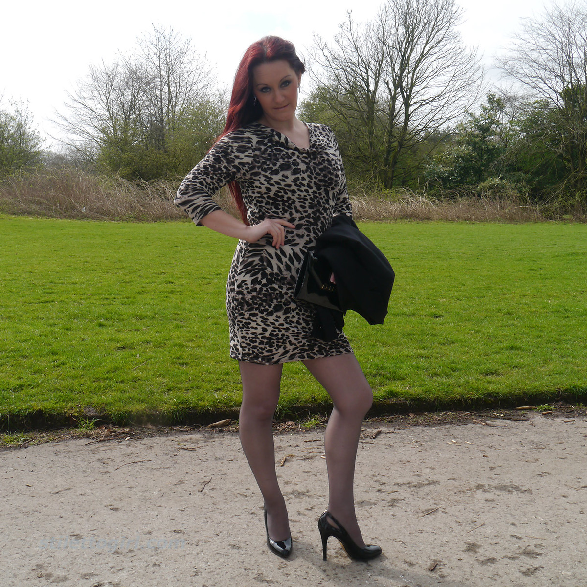 Sexy Jenna shows off her amazing legs in a pair of silky nylons and shiny black stiletto heels