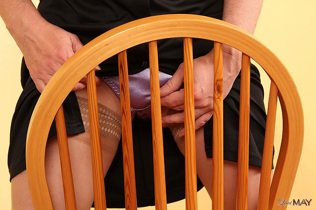 Hot tranny Luci May teases her sexy nylon legs and plays with her TGirl pussy