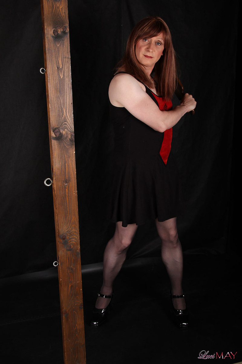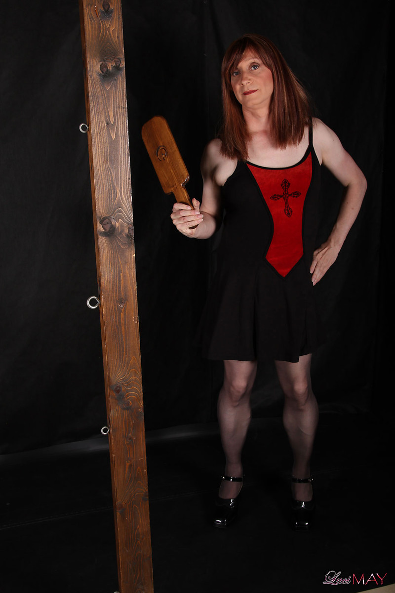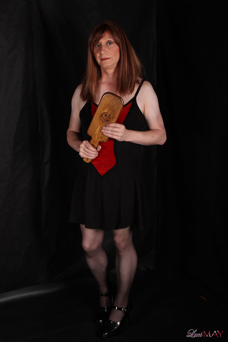 Horny Lucimay loves to give a stern spanking out with her wooden paddle.