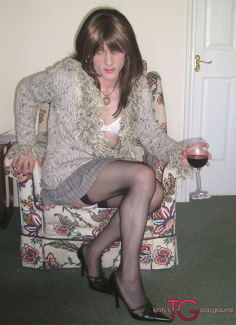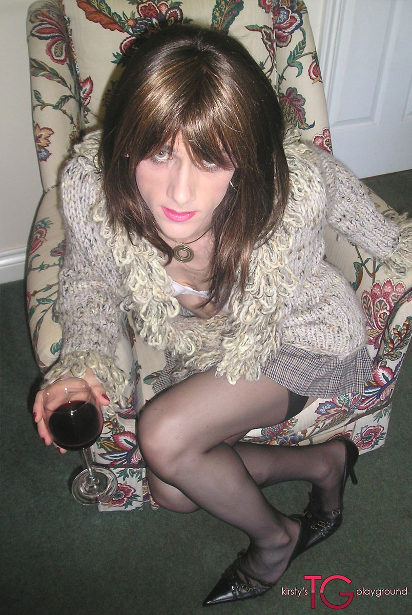 TGirl Kirsty enjoys a nice glass of wine before pleasuring herself with a nice big anal dildo