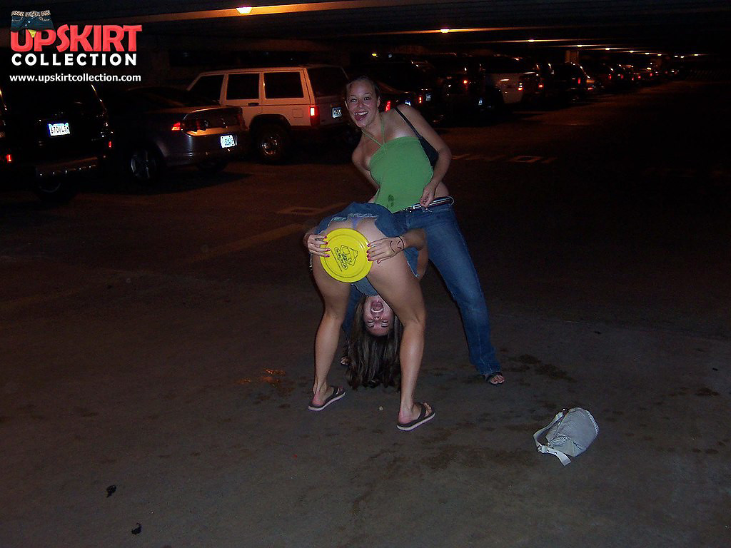 Girls sitting on parapet up the skirt