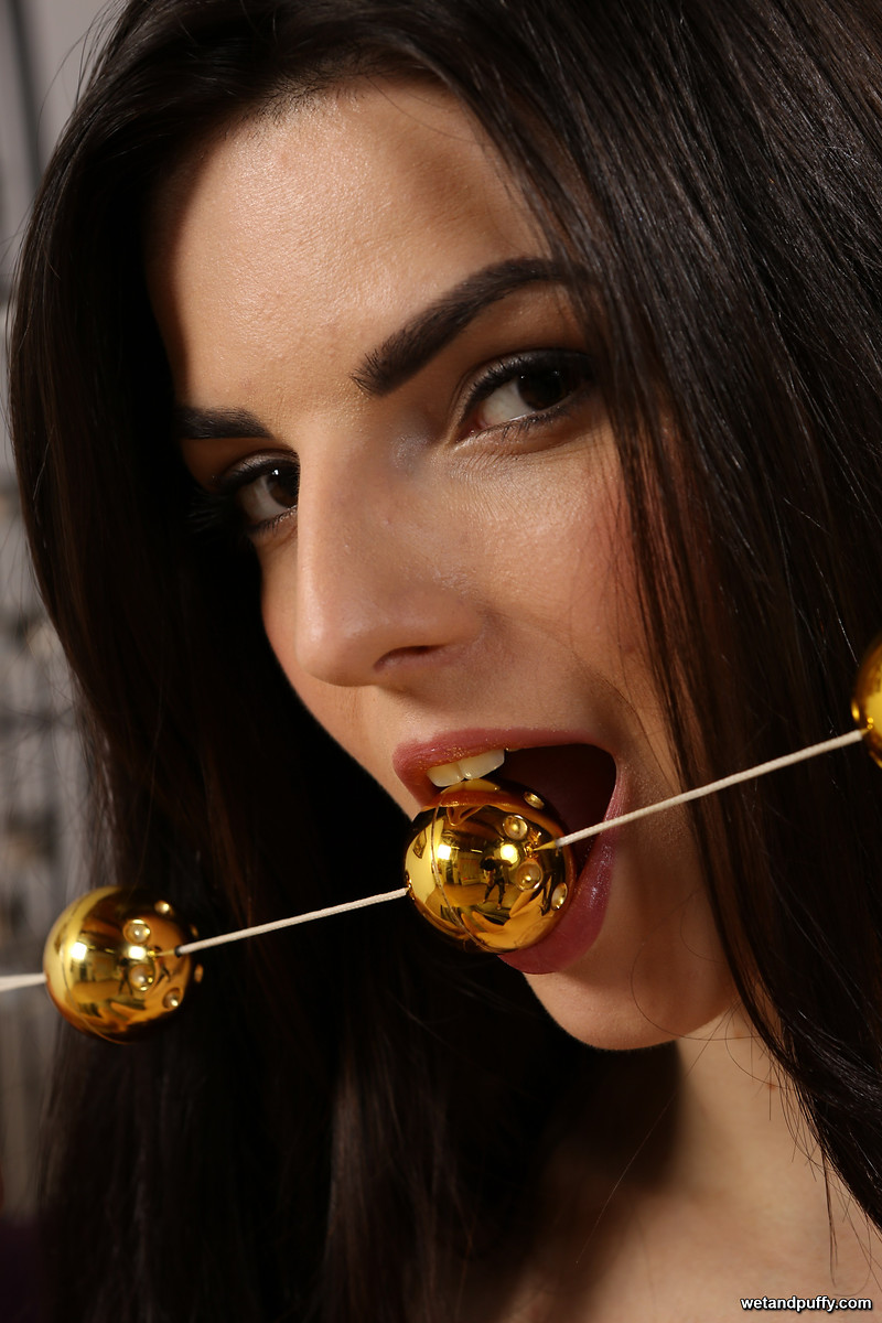 Sexy brunette Cynthia teases with a magic wand