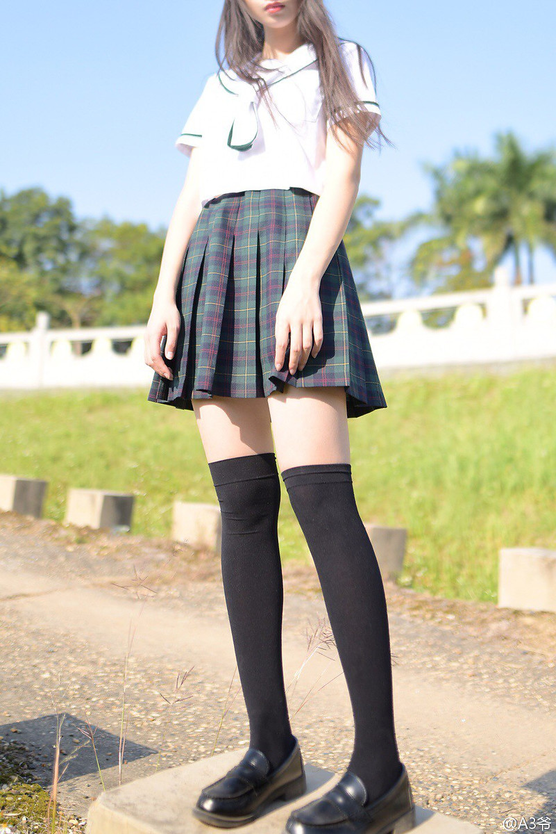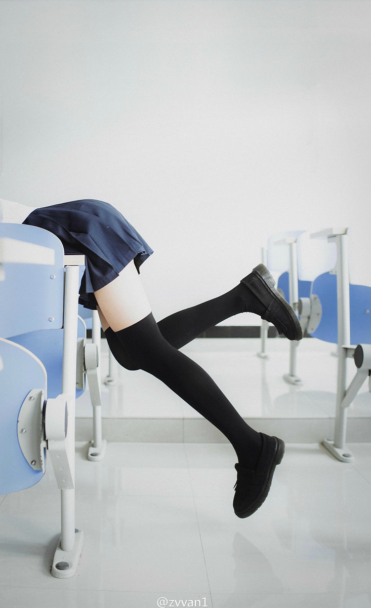 Tattooed college girl poses in seductive black nylons