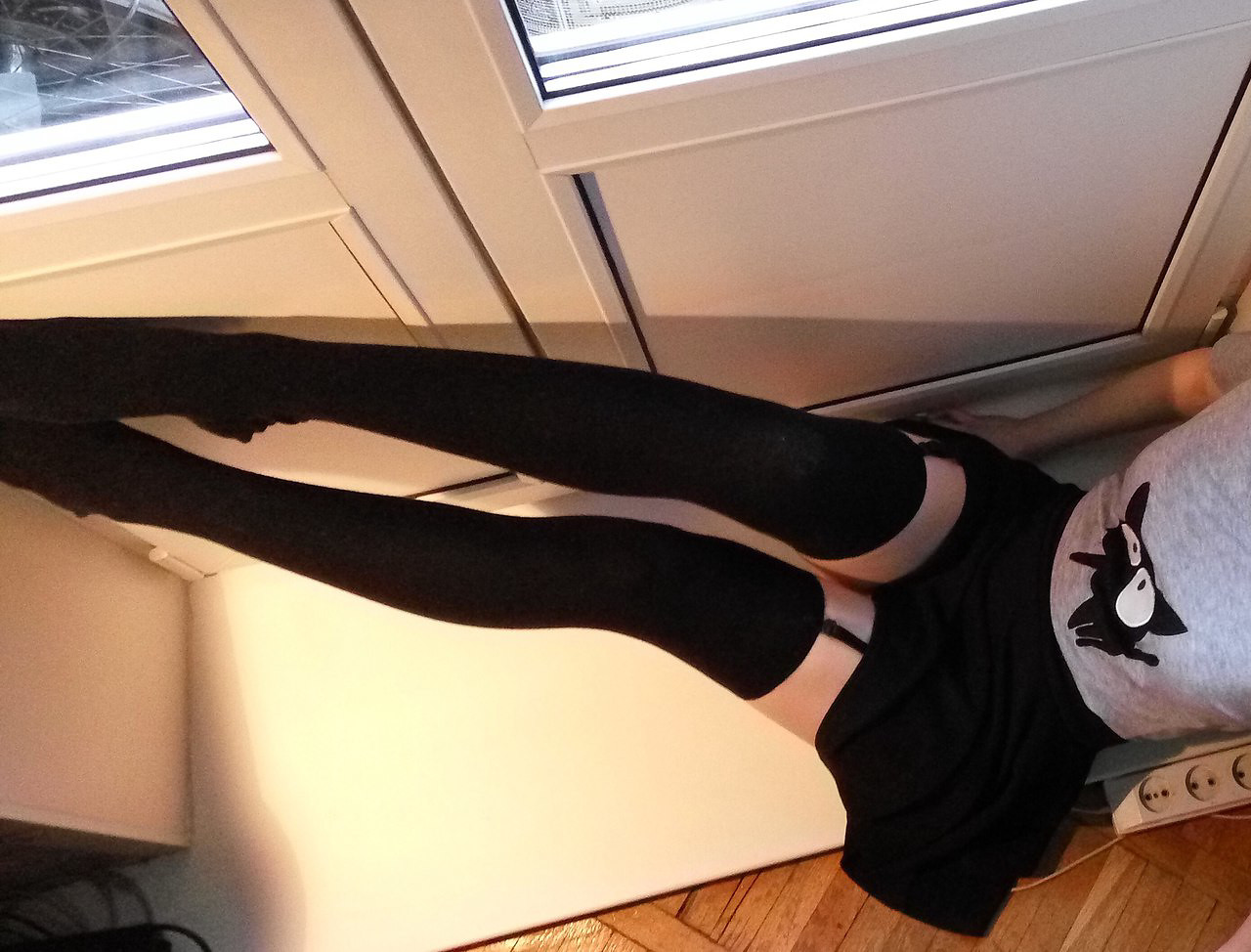 Beautiful sexy teen flashes her nyloned pussy