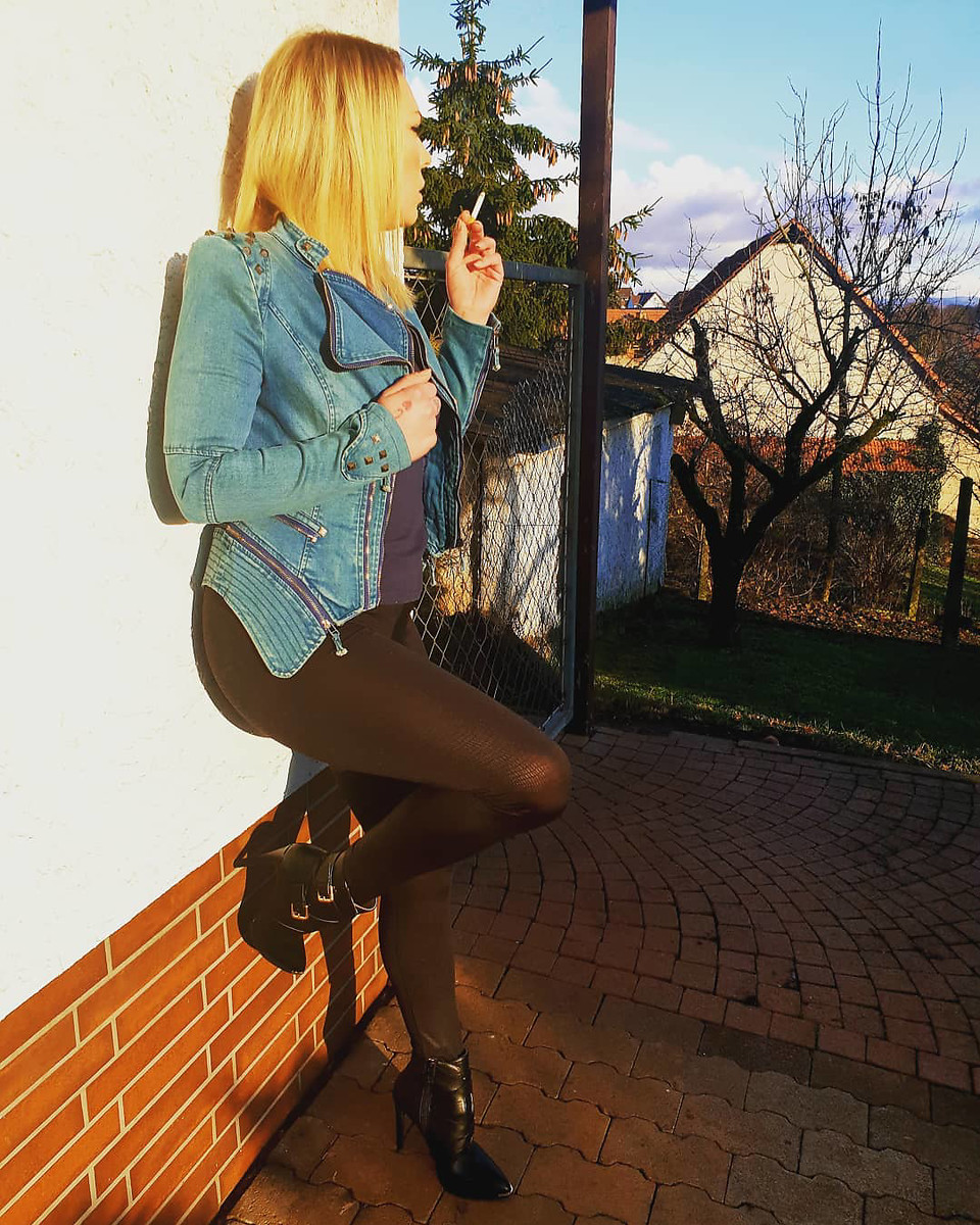 BBW slut in pantyhose posing sexy while smoking