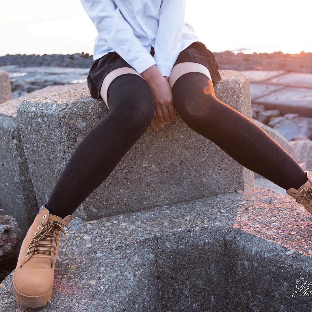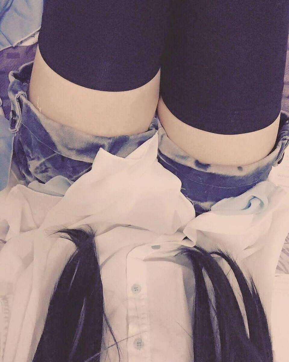 Smashing chick putting on her barely visible pantyhose before selfsucking