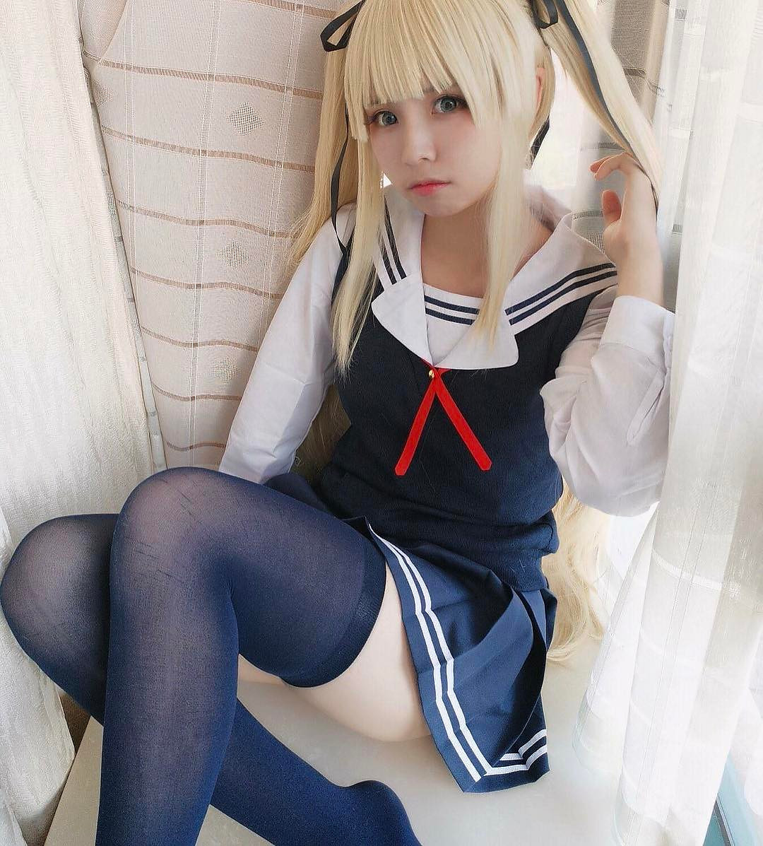 Blondie spreads her stockinged legs to the maximum