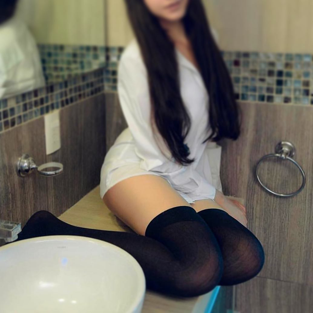 Slender readhead in sexy white stockings