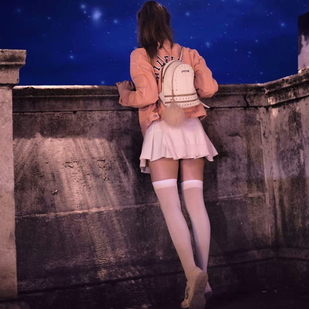 Teen Kami Arias pretty long legs and sexy soles in black sexy nylons