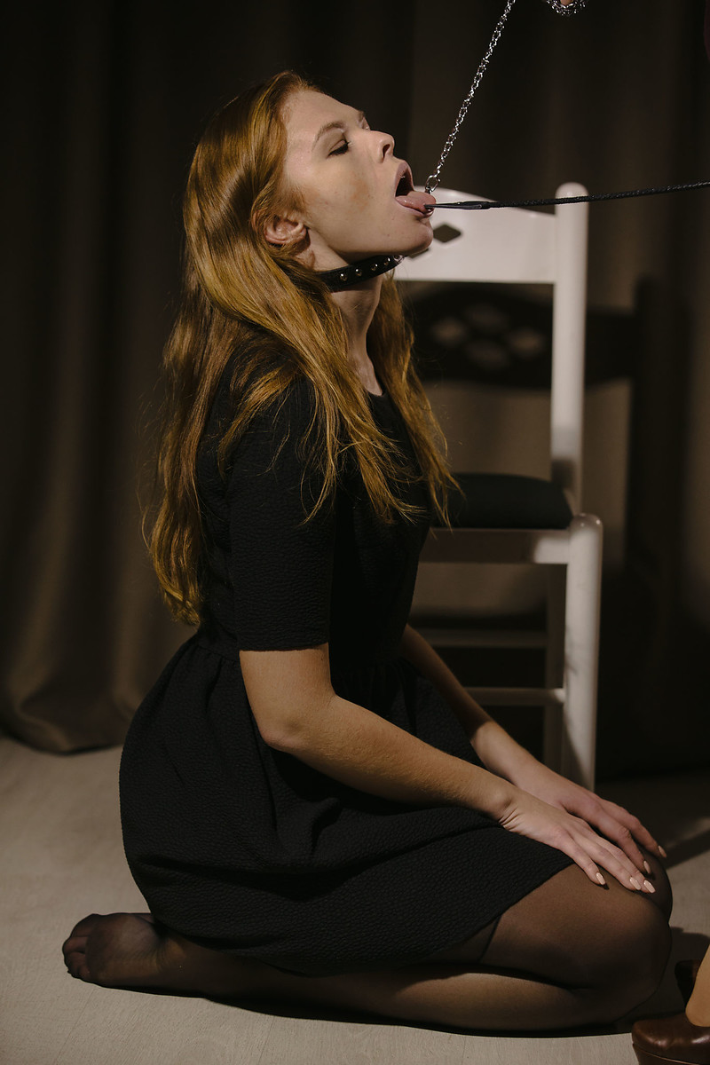 Busty blond beauty's stiletto heels almost pierce through slave's soft skin