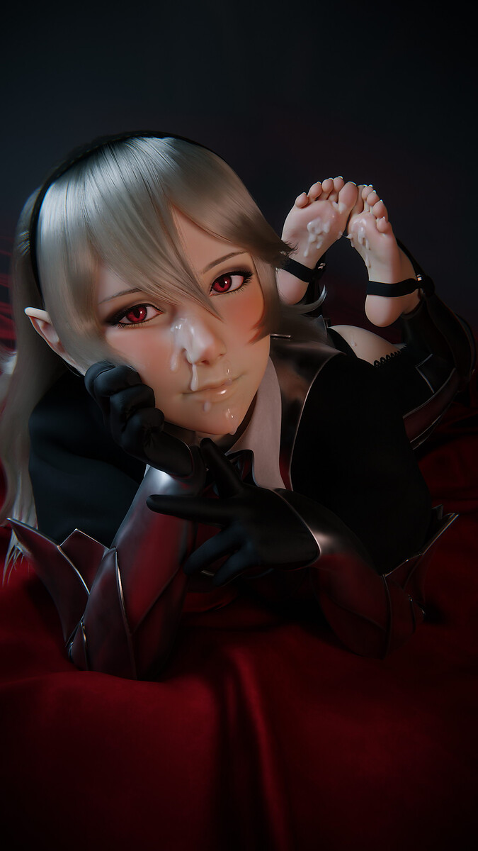Girl in nylons and high-heeled shoes poses in front of mirror