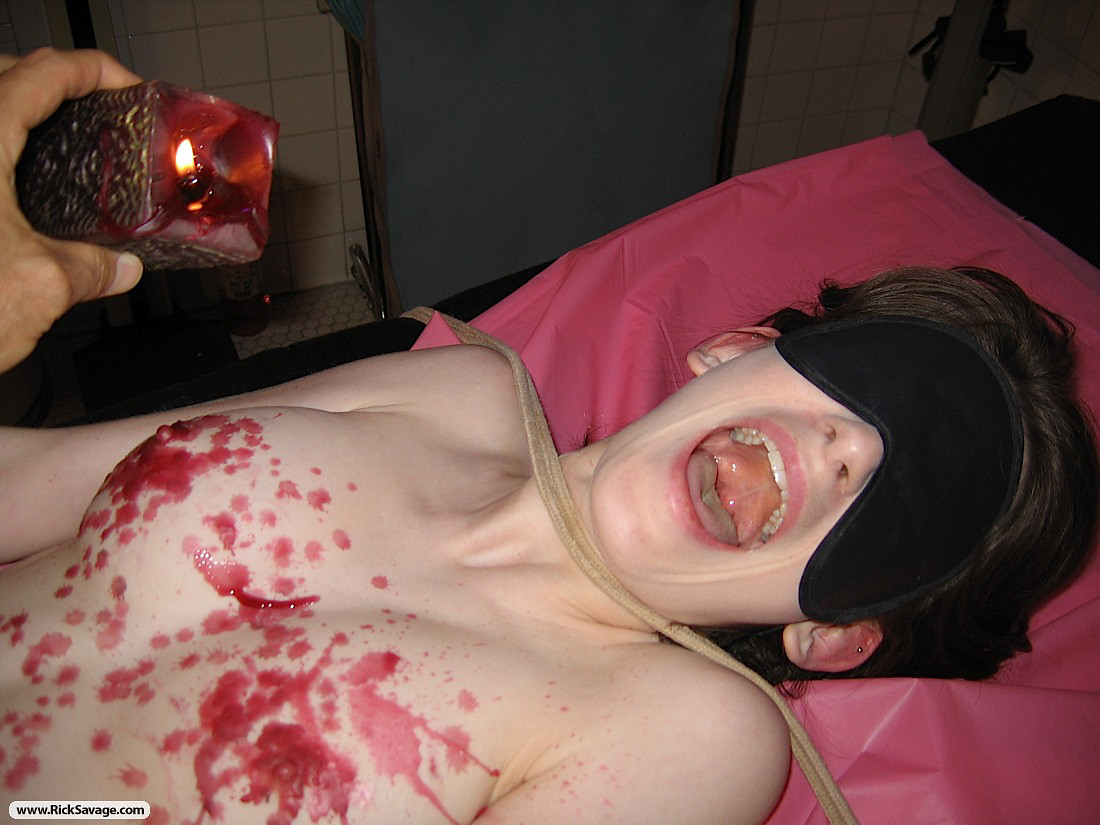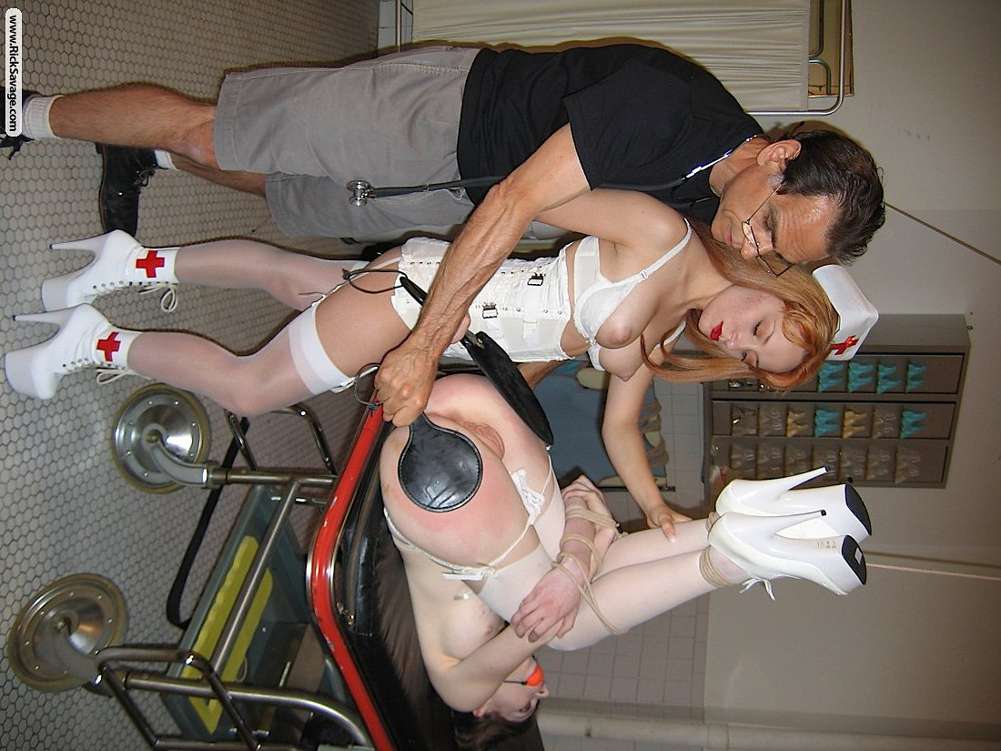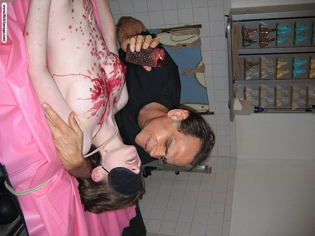 Mistress Gigi Allens fucks her helpless slave's ass with her huge red strap-on cock.