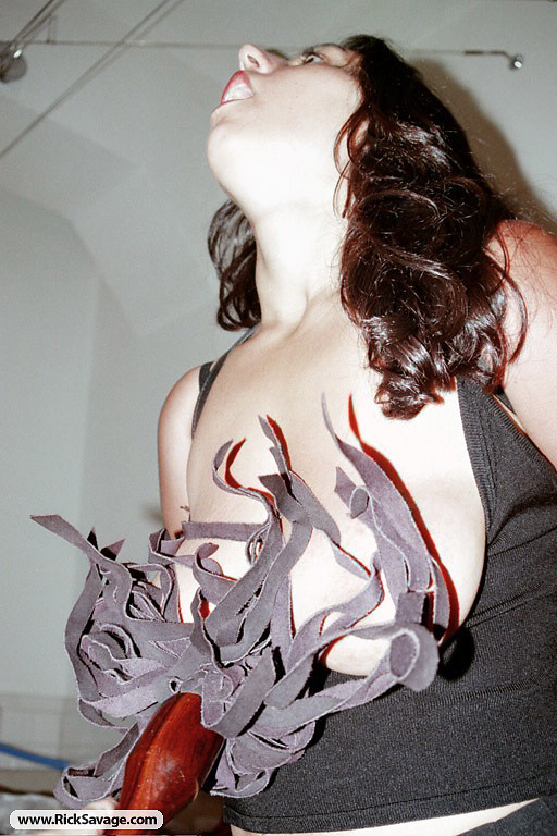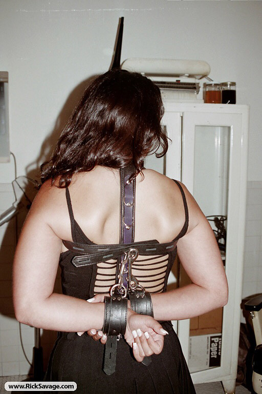 Mistress Gigi Allens fucks her helpless slave's ass with her huge red strap-on cock.
